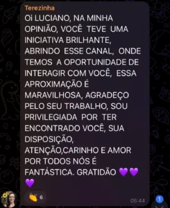 Interação direta com Luciano Cesa por meio de: mensagens, áudios diários e encontros por vídeo semanais.